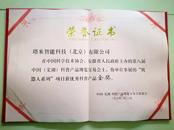 2018蕪湖(hú)科(kē)博會(huì)完美(měi)收官 →→ 塔米智能(néng)攬獲金(jīn)銀(yín)雙獎4月(yuè)22日(rì),第八屆中國(guó)(蕪湖(h←γ↔ú))科(kē)普産品博覽交易會(huì)落下(xγ★↕ià)帷幕,在這(zhè)場(chǎng)全國(guóπ→λ)科(kē)普領域內(nèi)唯一(yī)的π✔(de)國(guó)家(jiā)級展會(huì)上(s↔α∏≤hàng),塔米智能(néng)在本屆申報(bào)的(de)φ↓♦↔208項産品中,塔米智能(néng)機(jī)器(qì)人(☆₽rén)系列産品喜獲金(jīn)獎,V博士探客教育産γ'品喜獲銀(yín)獎兩項榮譽。