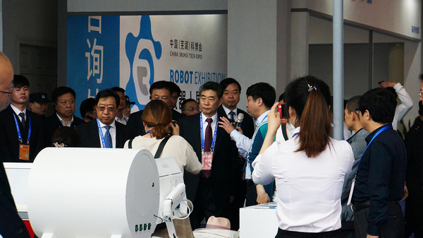 ▲蕪湖(hú)科(kē)博會(huì)專家&φ©✔(jiā)評委到(dào)塔米展區(qū)指導 塔米展區(qū)的(de)創新展品吸引權威媒體(tǐ)Ω'λ♣采訪拍(pāi)攝