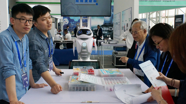 ▲蕪湖(hú)科(kē)博會(huì)專家&φ©✔(jiā)評委到(dào)塔米展區(qū)指導 塔米展區(qū)的(de)創新展品吸引權威媒體(tǐ)Ω'λ♣采訪拍(pāi)攝